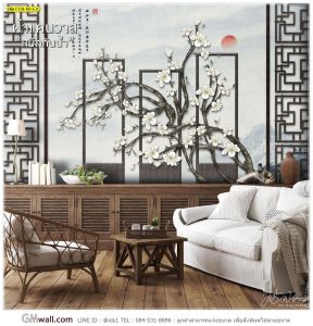 วอลเปเปอร์ติดผนังห้องลายดอกไม้ เสริมดวง